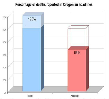 Analysis of The Oregonian news articles showed that 100% of all Israeli deaths were reported during the period of this analysis, and in many cases were reported more than once.