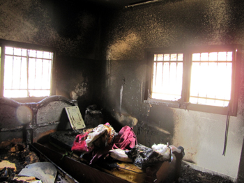 The burnt contents of a house torched in Huwara. Settlers are suspected of the act. Salma a-Deb’I, B’Tselem, 1 March ’11